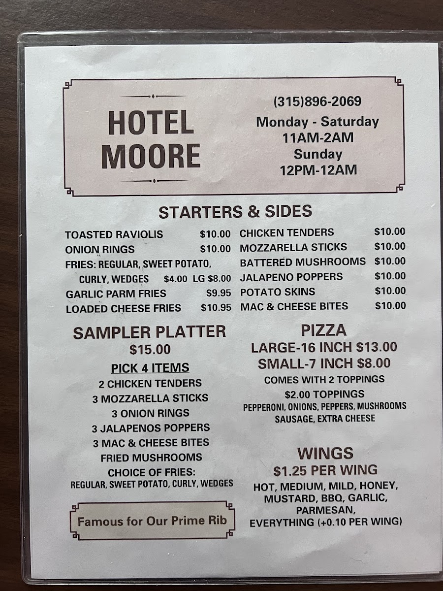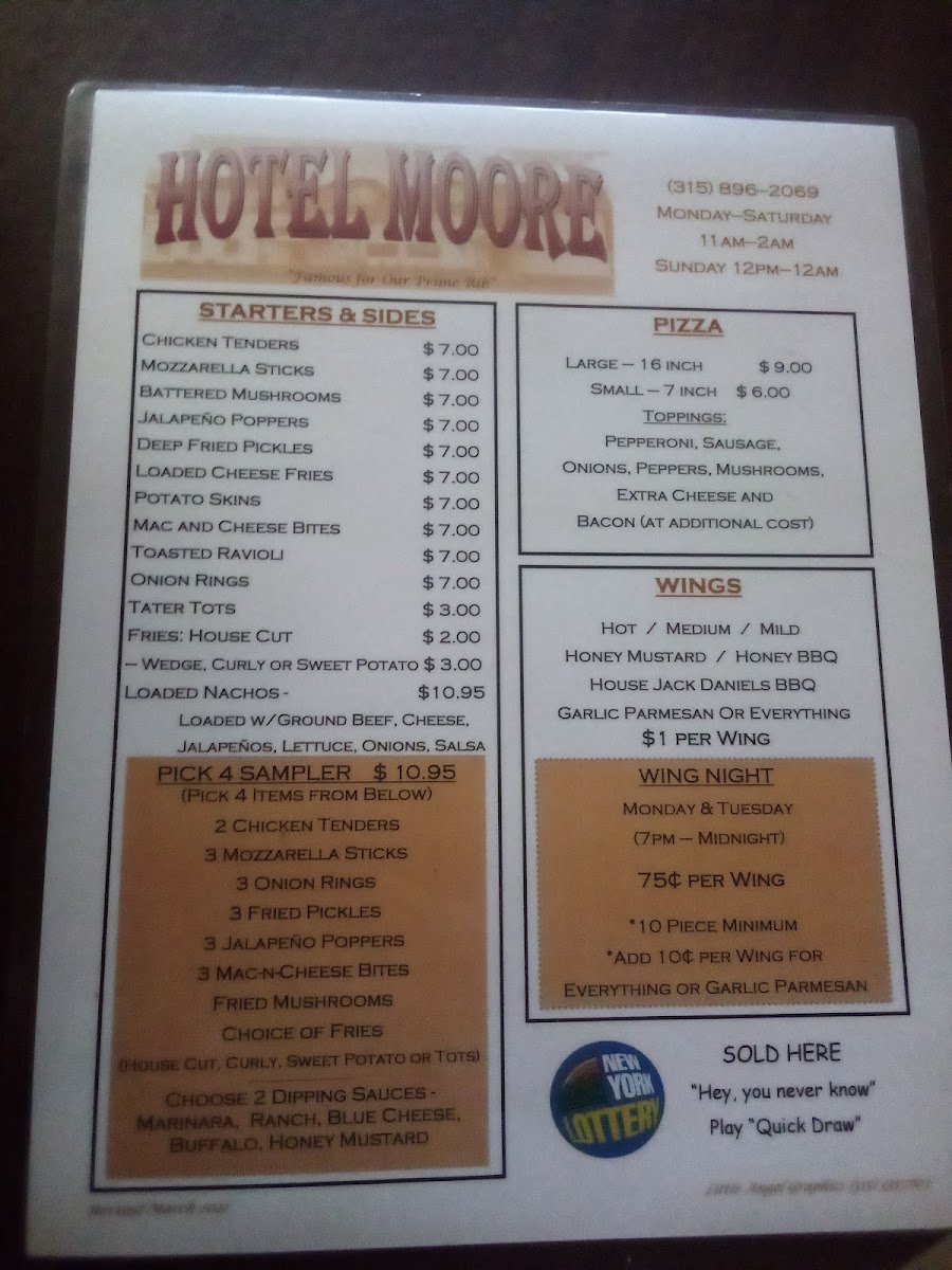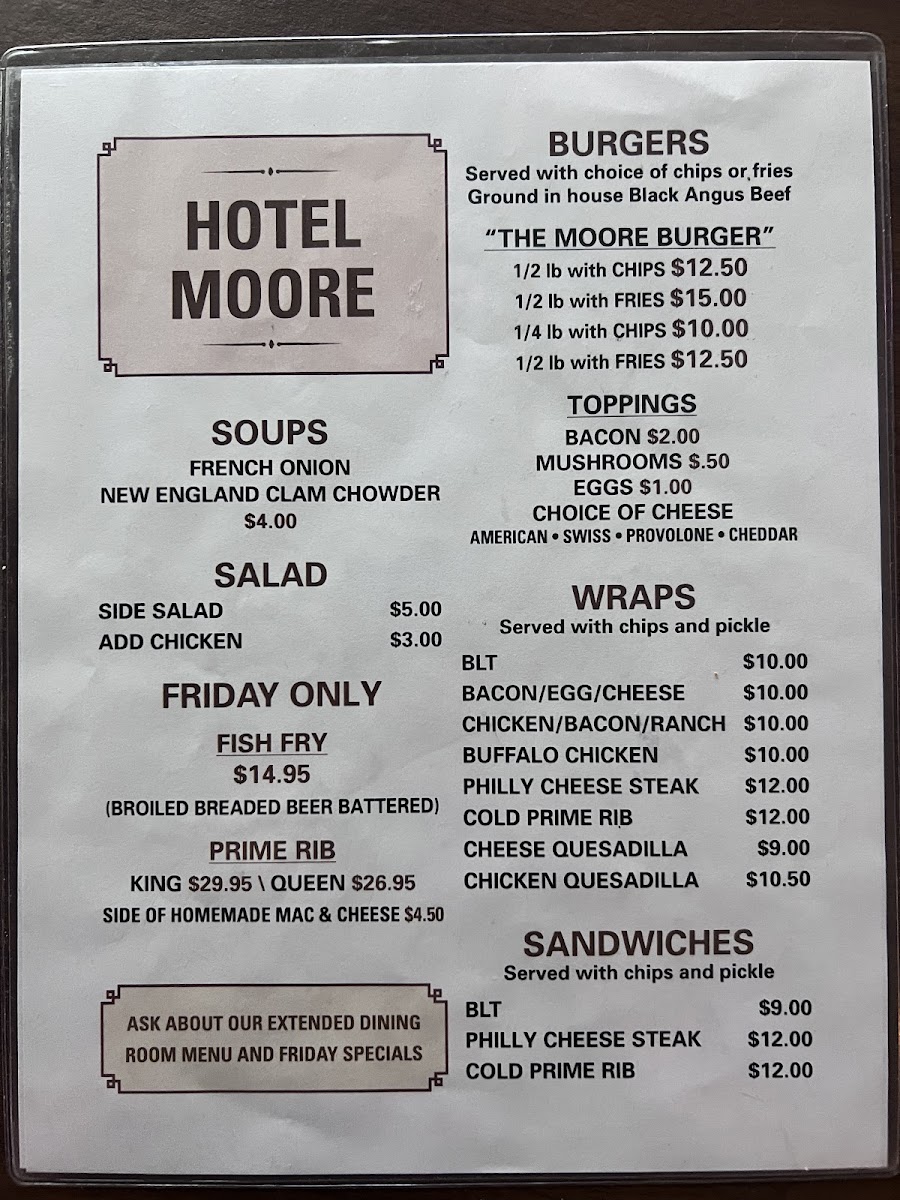 Moore's Bar and Grill Menu