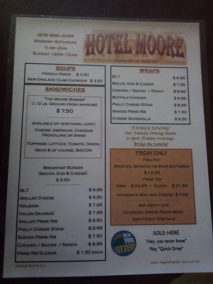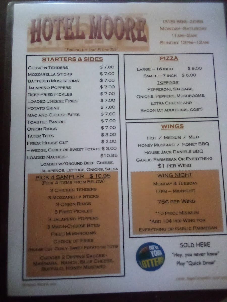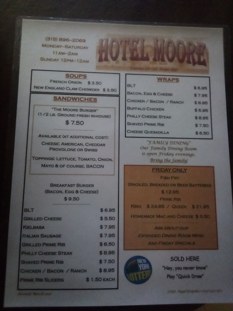Moore's Bar and Grill Menu